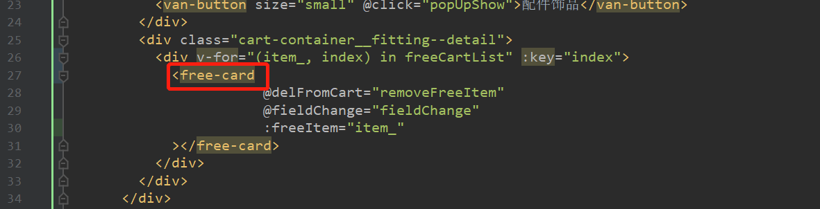 代码是mpvue,在cart页面, 当freeCartList数组数据新增的时候, 期望动态多显示一条free-card子组件,通过子组件监控,数据已经获取到了,但在父组件cart页面中,没有动态显示。表现的现象如下: