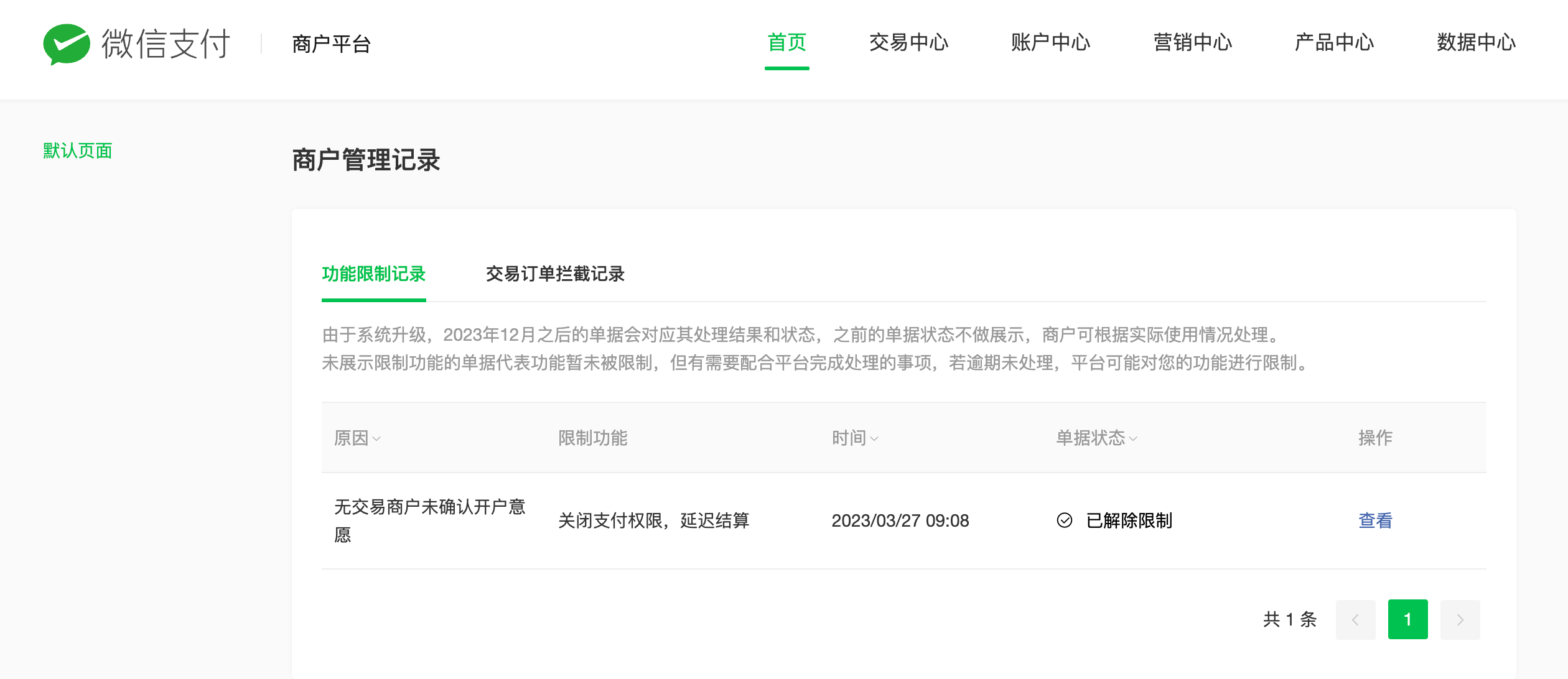 违约记录已经解除 还是报错 商户号 1229840802