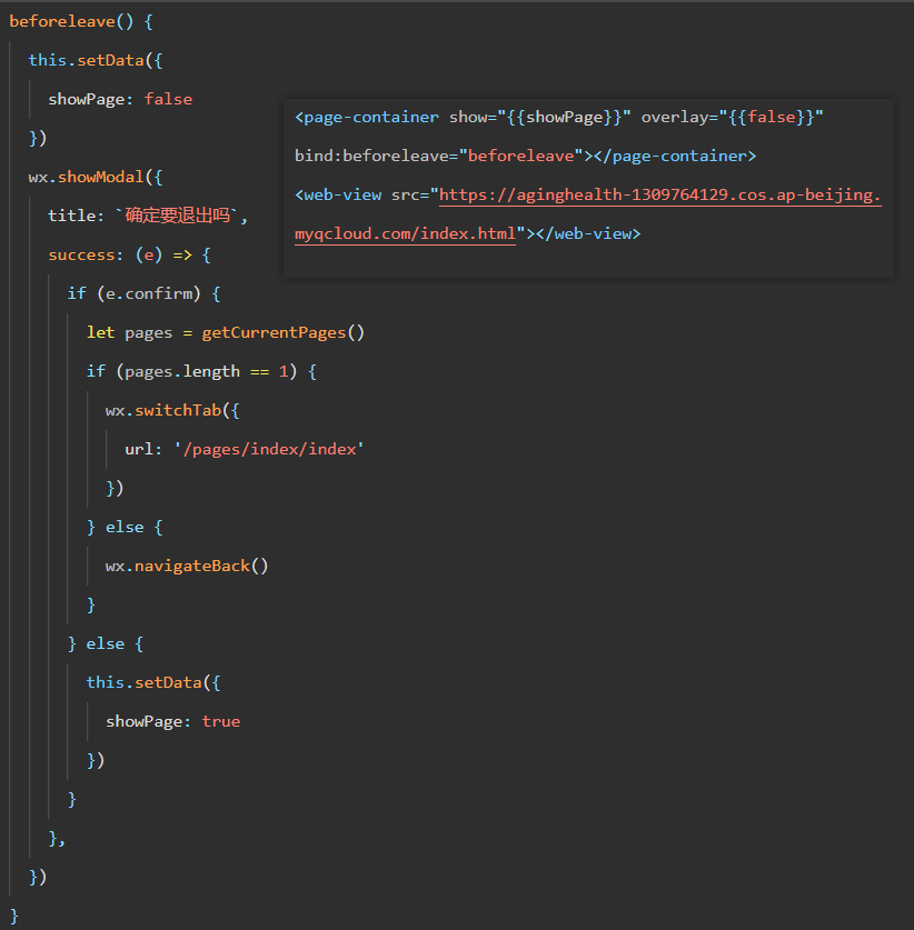 如果不用web-view组件都是正常的,会阻止返回并弹出。用了web-view组件ios手势滑动只是阻止了没有弹窗,ios点击导航栏返回是可以阻止并弹窗、安卓手机收拾导航导航栏都可以,有解决办法吗?