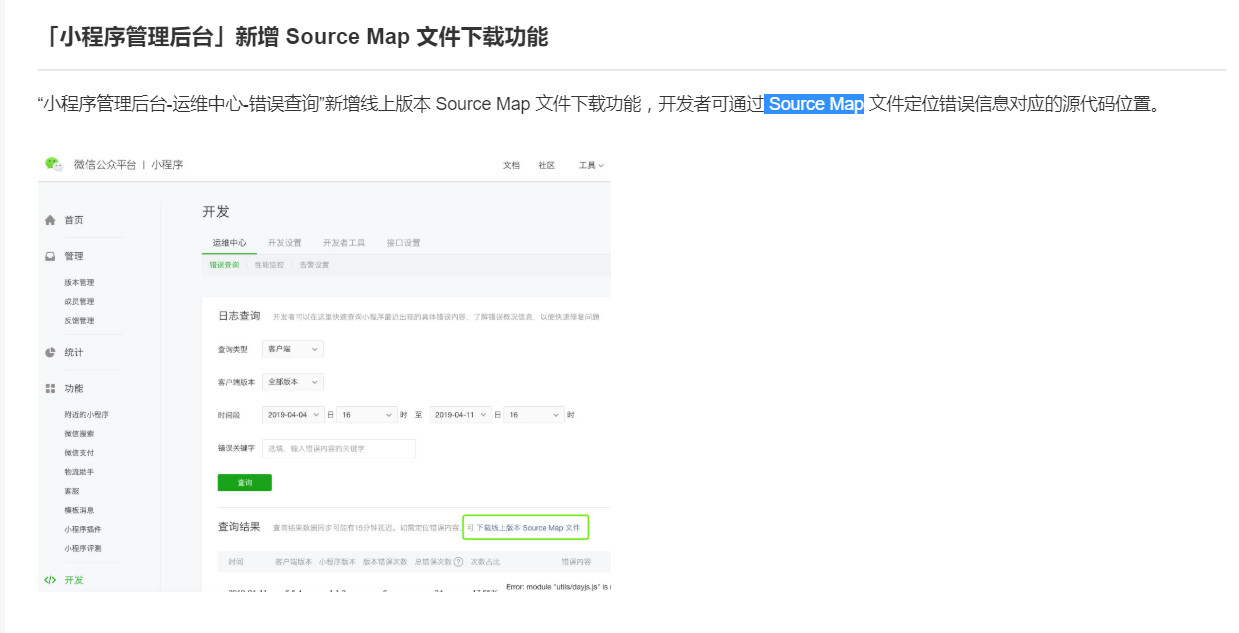 问题2: 我看到论坛里面大家都说、在 “运维中心”-“错误监控”里面,可以下载sourcemap文件,为什么我的后台里面没有这个下载链接?