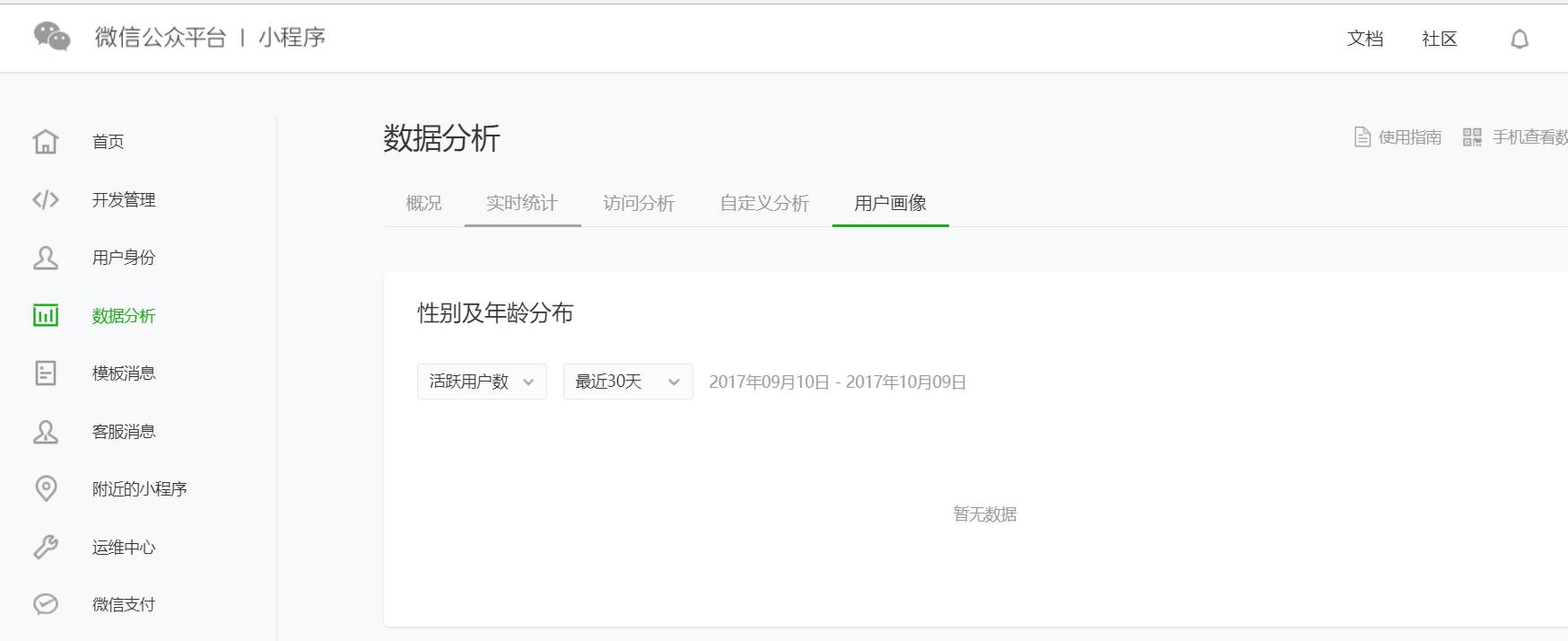 如图,在小程序后台,“数据分析”版块里的“用户画像”,原来可以显示用户年龄分布、机型分布之类的数据,现在全都没有数据了,这是什么原因?