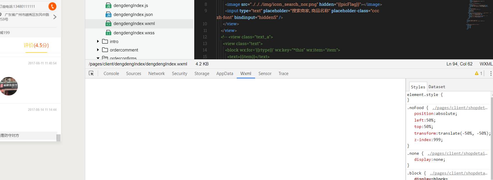 3、wxml会经常性出现获取不到页面dom的情况,只有在激活了wxml这个tab的情况下才会保证可以看到dom结构。
