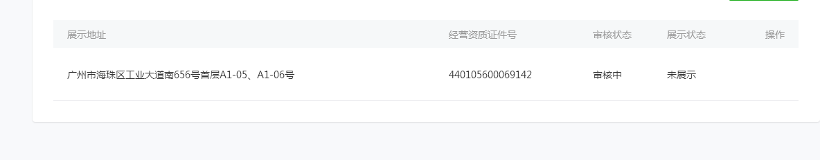 您好,审核好几天还没审核到呢,还有个问题是我提交的是地址是广州市海珠区工业大道南656号首层,但还显示之前的