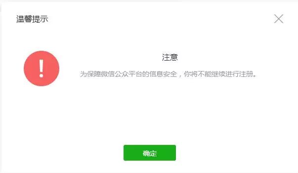 注册微信小程序,但是老提示“为保障微信公众平台的信息安全,你将不能继续进行注册。”,