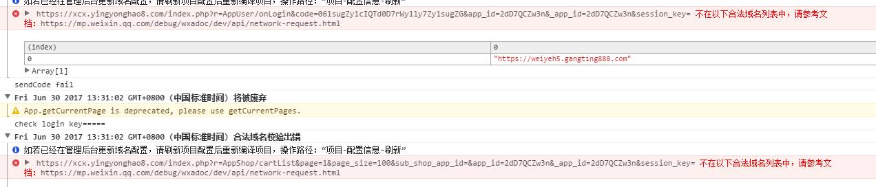 你注册的合法域名只有 weiyeh5.gangting888.com,但你在程序里访问报错的域名明明是 xcx.yingyonghao8.com 啊。