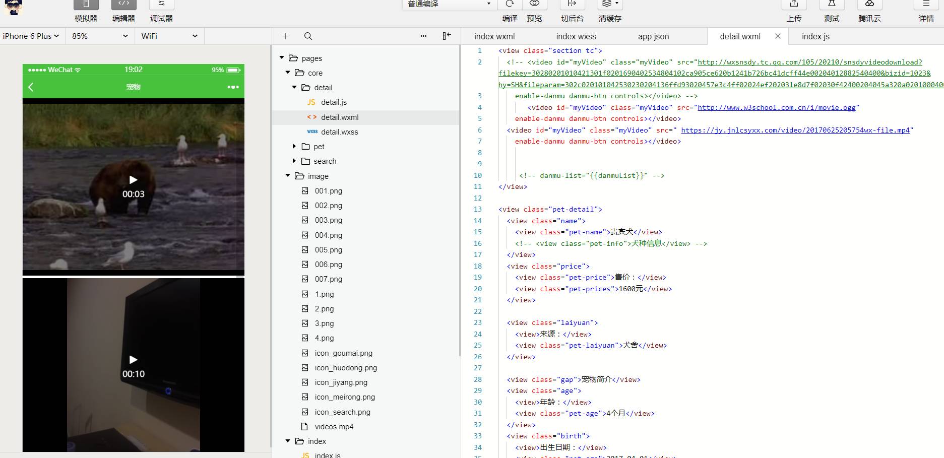 在模拟器上面运行的时候,视频能够正常播放,而在手机上运行小程序的时候总是一片黑屏 以下是video处代码