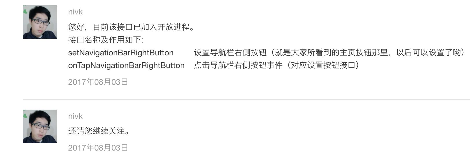 之前看到你们工程师有回复说要开放这个自定义右上角按钮的api