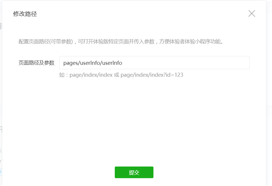 体验版的默认打开页路径已公众平台中“修改页面路径”为准