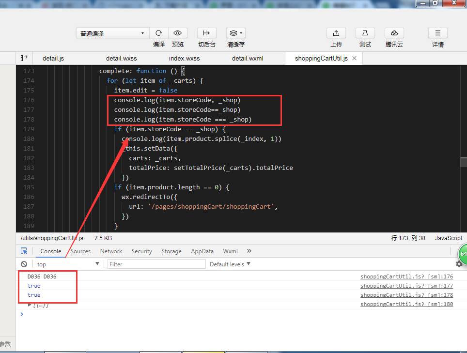 问题:同一段代码,同一段数据,微信开发者工具与真机执行的结果完全相反。