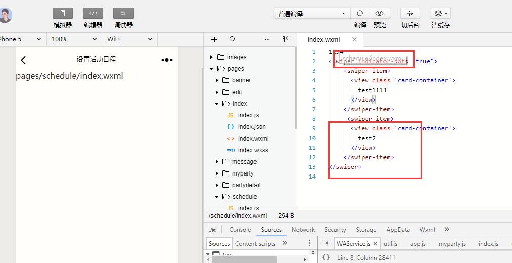 请确认您编辑的文件是 schedule/index.wxml 还是 pages/schedule/index.wxml 呢?