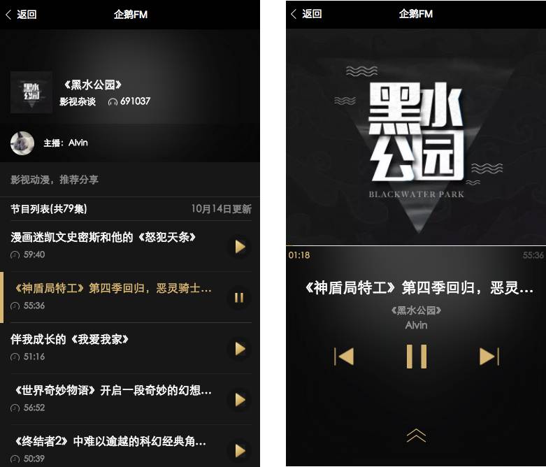 列表中的节目,播放按钮有“播放”和“暂停”两种状态切换