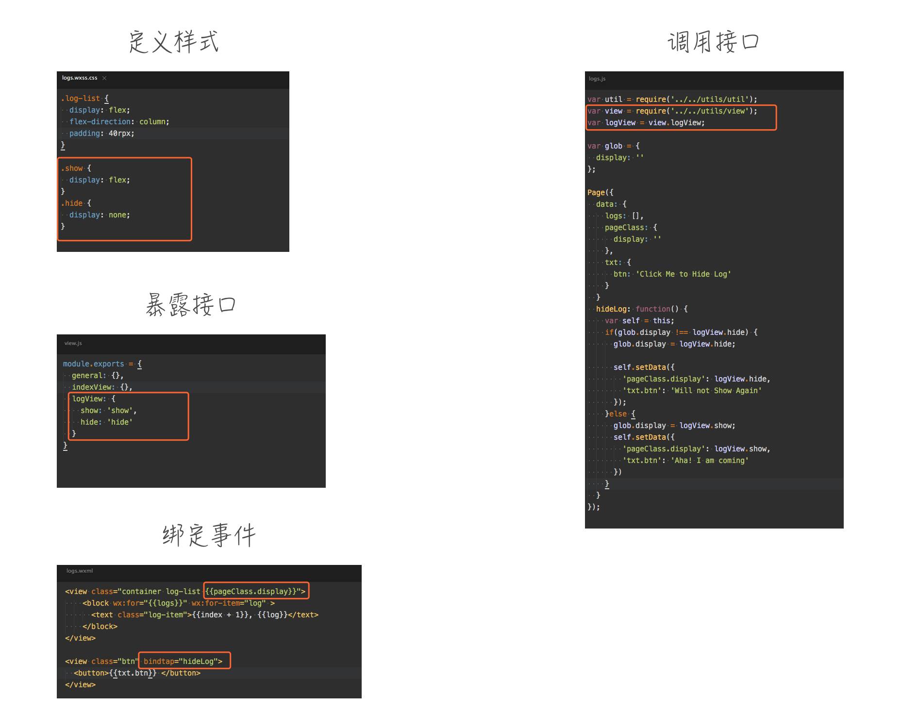 view.js中,并暴露接口在 wxml 中的对应结构中绑定 event handler