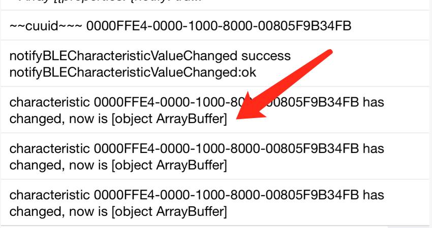 目前情况是现在已经成功连接设备,且notify已经设置为true,在wx.onBLECharacteristicValueChange回调中接受到的数据怎么查看,目前打印的log是按照API文档中打印的,