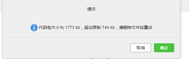 wechat_demo在移动端上传,提示代码包大小为1773KB,超出限制749KB,请删除文件后重试,是什么原因,谢谢