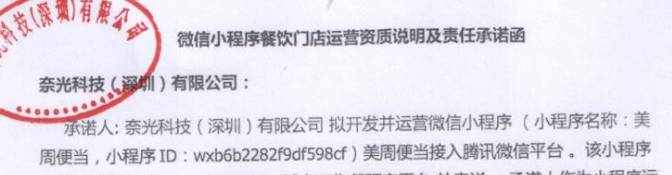提交了《微信小程序餐饮门店运营资质说明及责任承诺函》