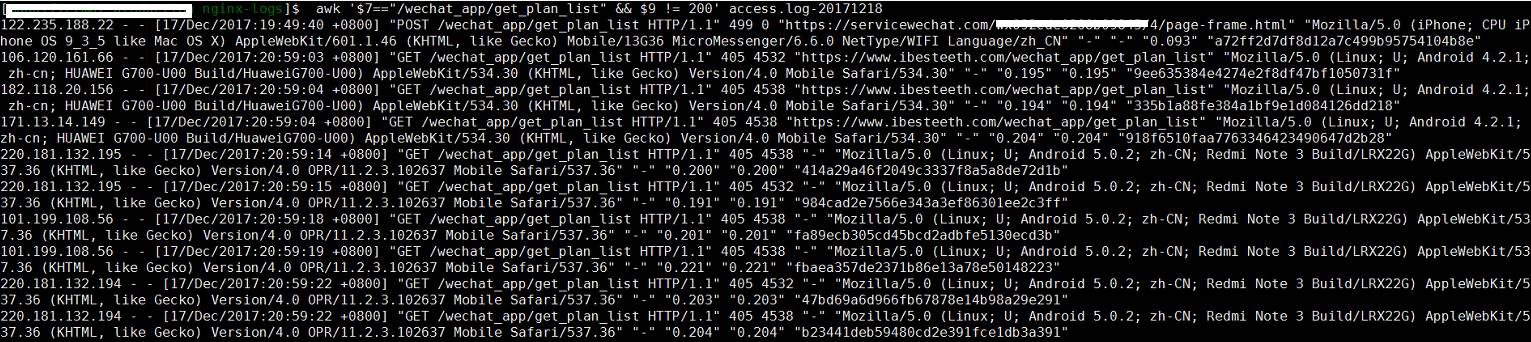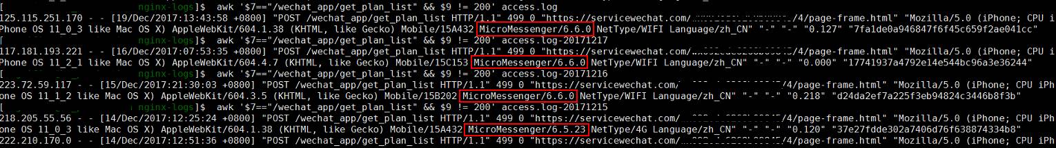 分析最近几天的日志后发现,在单日所有小程序接口的请求中(6000±)总有几个奇怪的499,400,405。