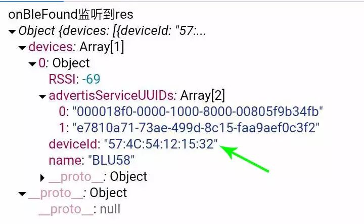 下图是安卓手机搜到的,好像mac地址,用wx.createBLEConnection连接失败