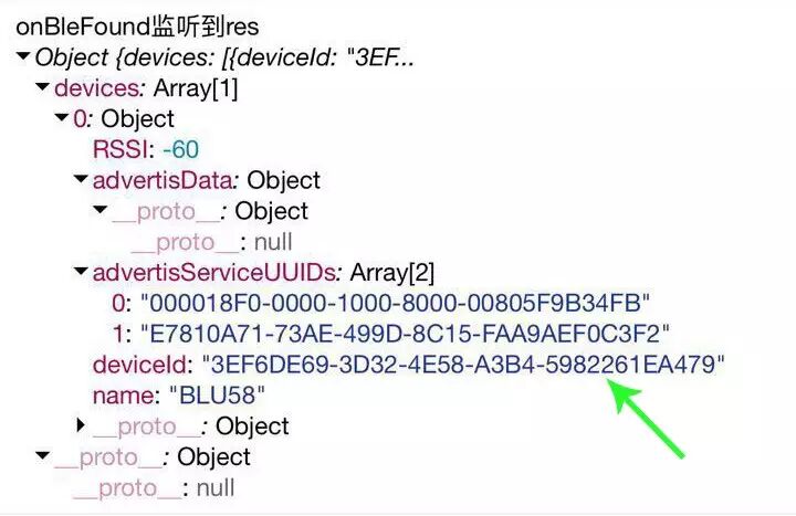 描述清楚点,我发现的是这种情况,苹果手机搜到的deviceId和安卓搜到的不一样,安卓的好像是mac地址一样,如下图,第一张是苹果搜到的,用wx.createBLEConnection连接成功