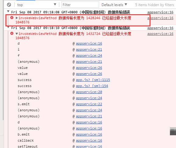 微信工具调试时出如下错误,是哪里字节超标了?“invokeWebviewMethod 数据传输长度为 1428246 已经超过最大长度 1048576”