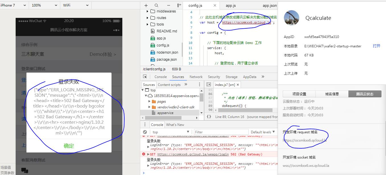 502 是因为 Node.js 进程没有启动起来,可以重新上传检查一下状态。