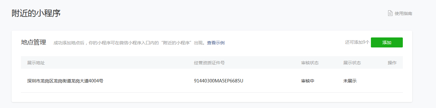 地点管理提交的申请都已经一个月了,还在显示审核中,现在导致附近小程序没有显示,AppID(小程序ID): wx2e3c36a7de707617