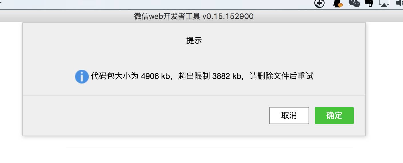 微信开发工具 提示上传文件大小限制,这个可以设置吗