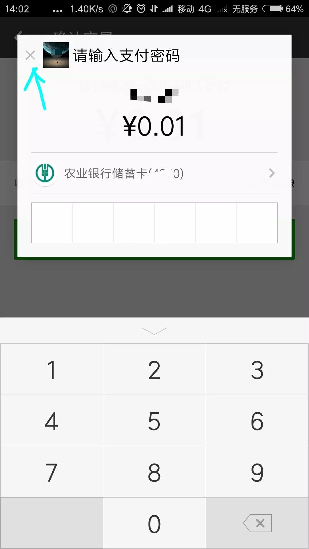 已经成功调起扫码支付,进入支付页面后,在输入密码前,点击左上角X关闭按钮的事件如何监听??