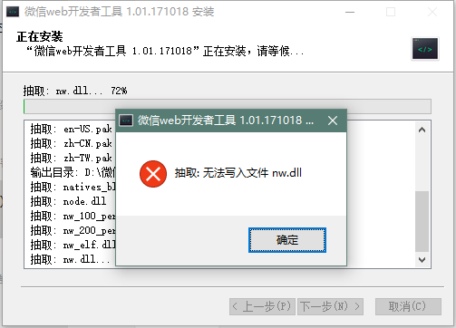 请尝试完全退出开发者工具、完全删除安装目录下所有文件后,再安装一次试试呢。