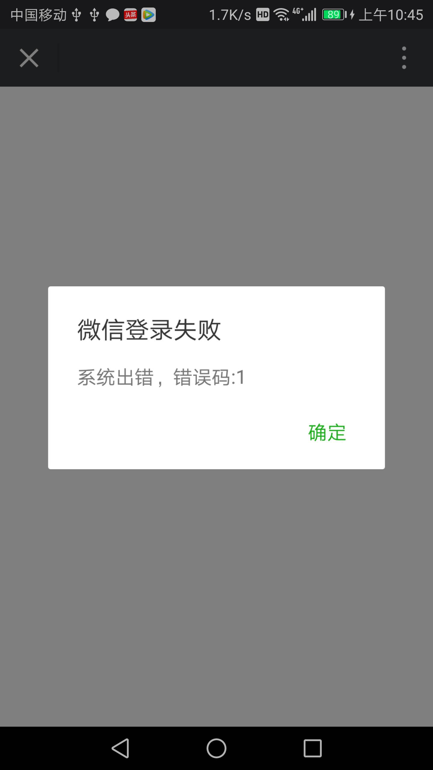 微信公众号点击底部的导航(点击底部王者之战或者互动里面的用户信息都会出现此问题),出现系统错误1,无法根据开发文档找到对应的解决方法!上周出现过一次,拨打腾讯客服电话,人工受理后由腾讯技术解决此问题,该问题并非开发者方面代码的问题,是微信本身的问题,无论IOS还是安卓都出现了该问题,由于节目播出时间是周末的17:30,而该功能又是电视节目的数据来源,所以务必请尽快解决!