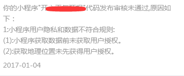 第一次进小程序,微信就会自动提示用户授权使用地理位置的,第二次以后就不再提示,怎么审核就不通过呢。可能是审核人员误判了。