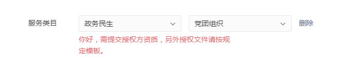 授权模板在类目选择中可以下载。如果是政府机构如党委、团委,可直接提供组织机构代码证。