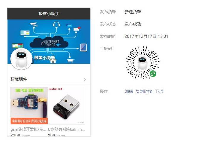 成功发布的货架,扫码后,进入小店
