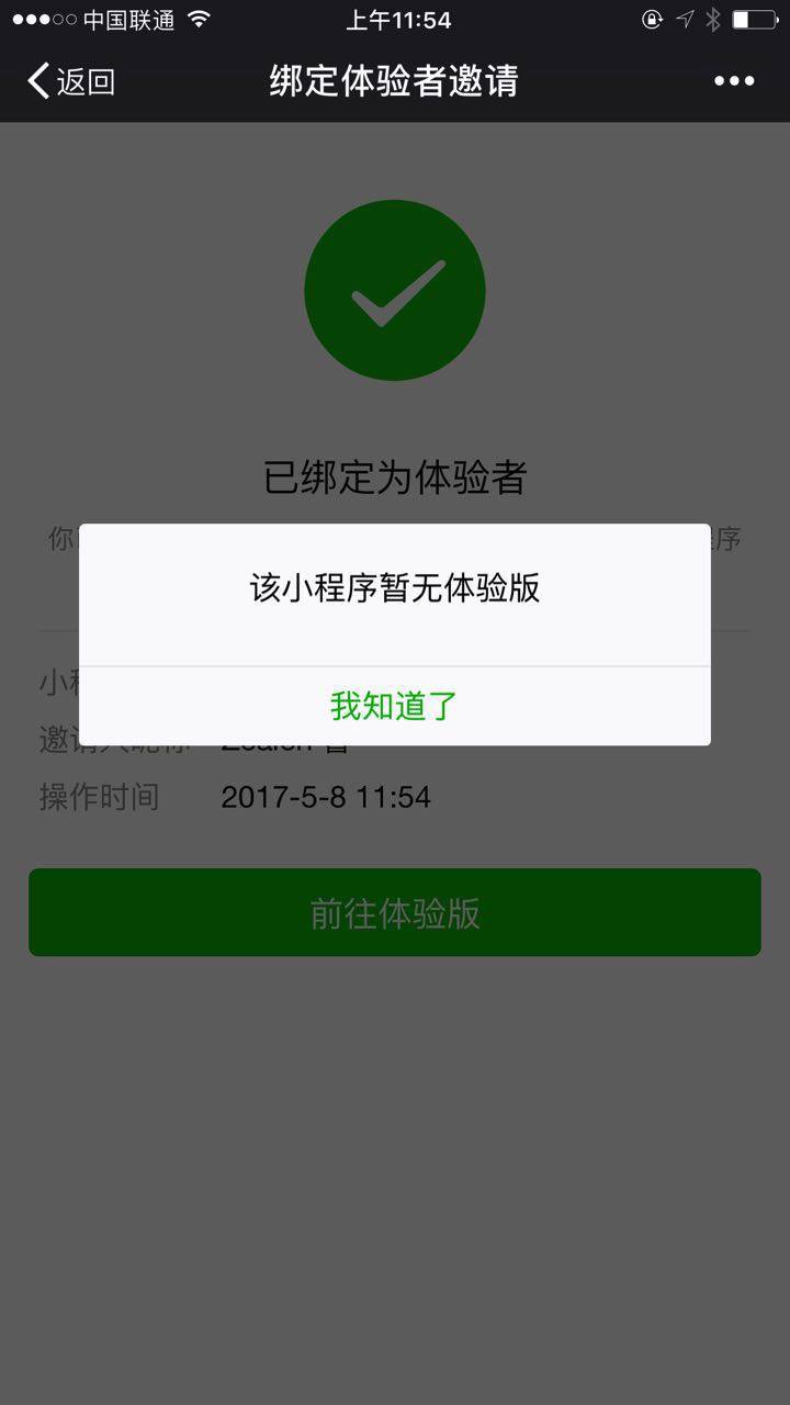 第三方平台添加体验者后,确认后点击显示无体验版