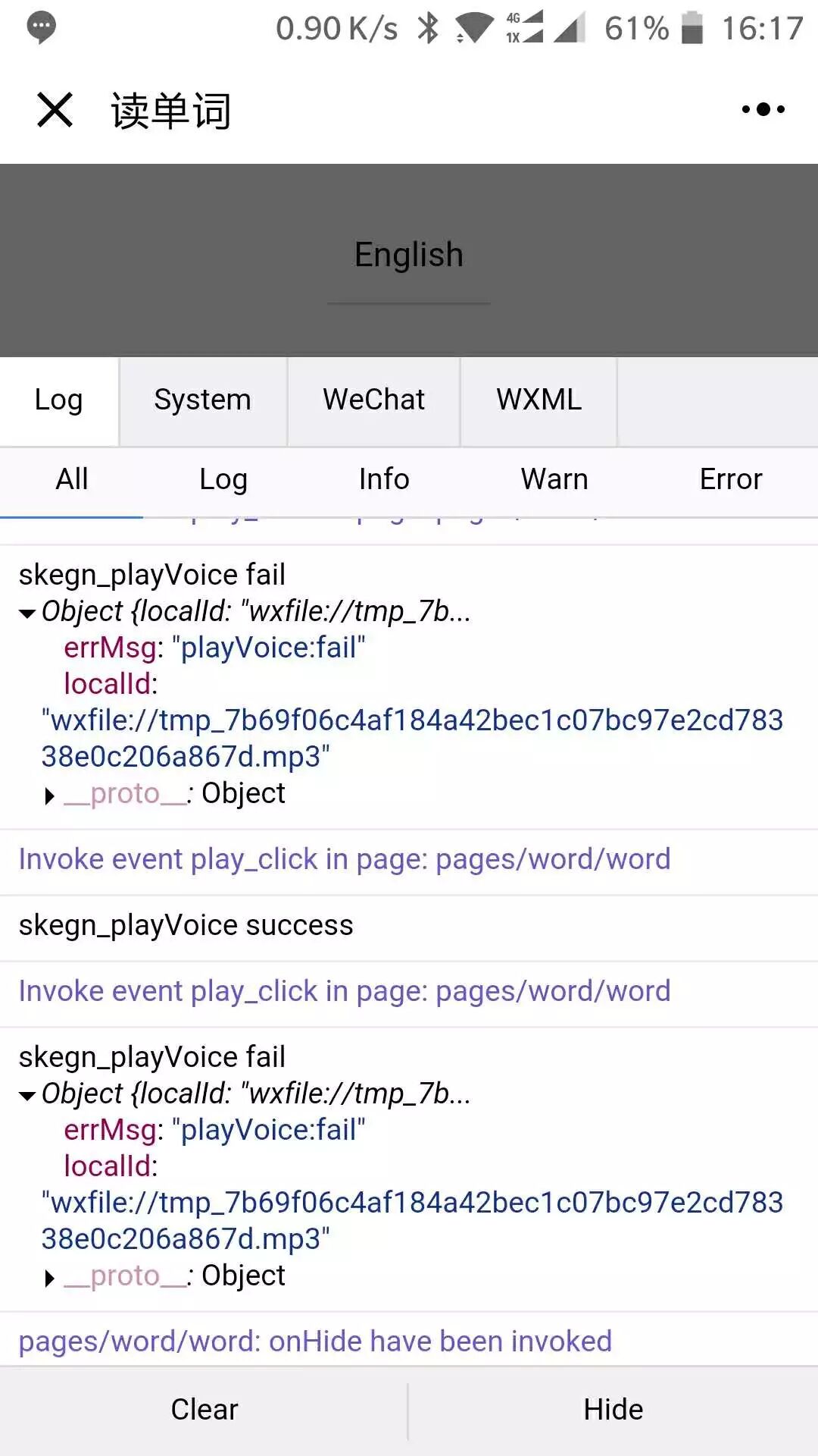 3、录音管理器的录音文件,调用wx.playVoice方法无法播放,提示播放失败,未指明确切原因,我这边录音的格式 是mp3格式