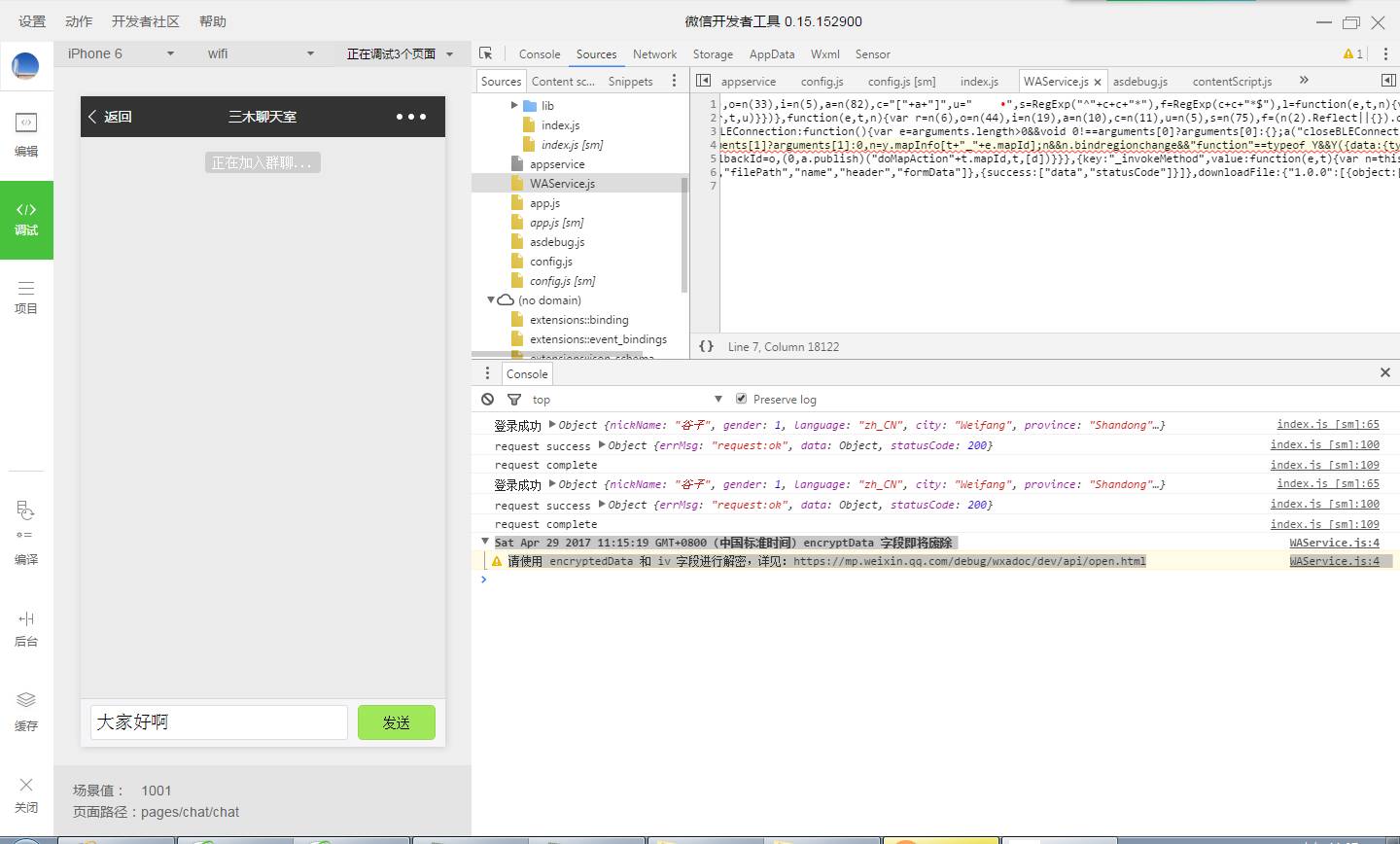 WAService.js:4 请使用 encryptedData 和 iv 字段进行解密,详见:https://mp.weixin.qq.com/debug/wxadoc/dev/api/open.html