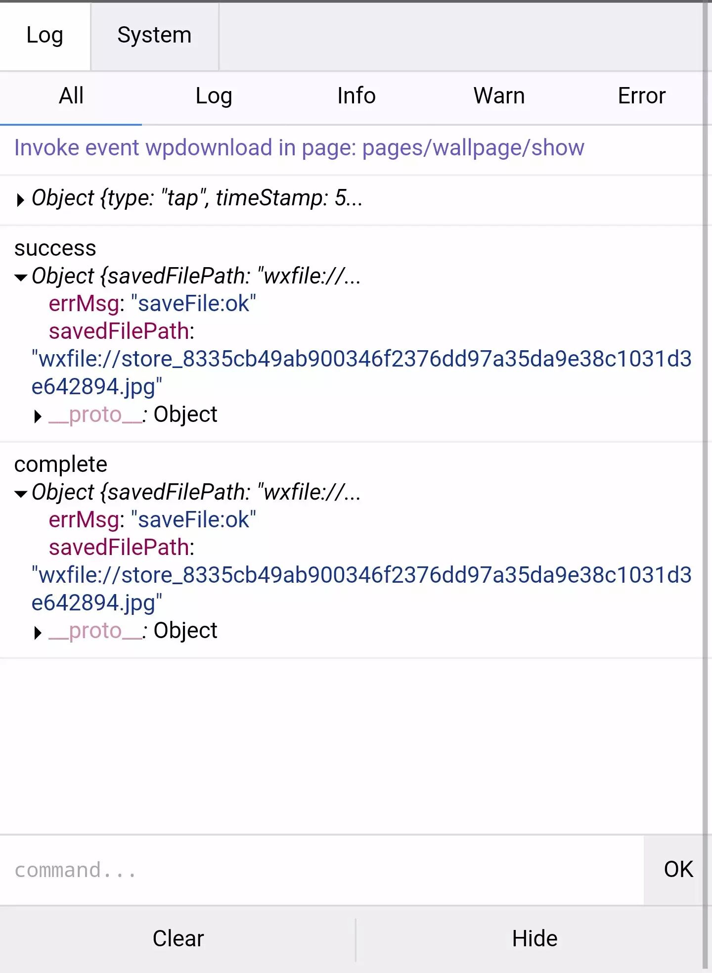 先后使用了downloadFile进行临时保存,然后用saveFile进行了文件永久保存。 1、但保存下来的文件是没有扩展名的。也就是手机无法识别该文件是什么。 | ||