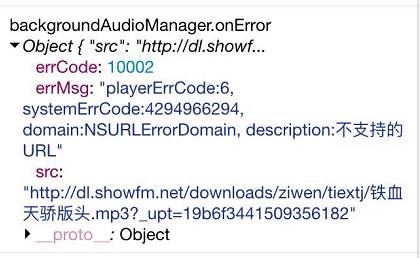 backgroundAudioManager 播放音乐 模拟器 安卓 都没事 ios就会出现url 10002错误 ,可以说明白url有什么要求吗???