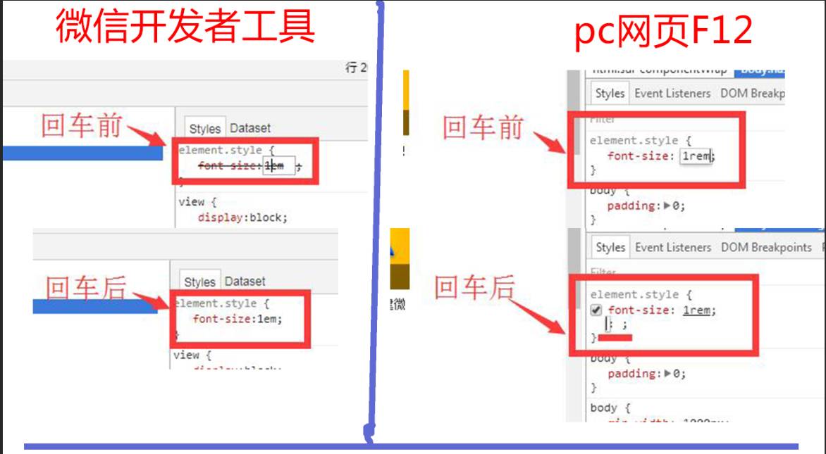 红框里,这里能不能设计成跟pc的F12一样呢?就是说调试样式的时候按回车可以开始下一串样式的编写而不是处于完成状态,z这样对于调试应该更加方便。如下图: