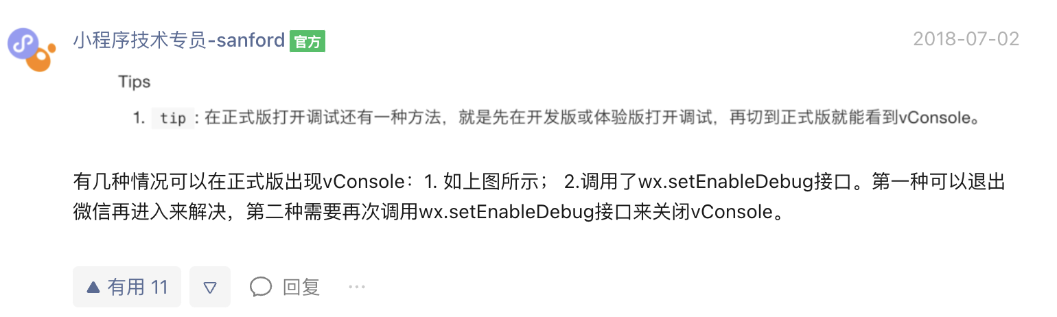 还有种办法,就是在微信中删除正式版小程序,重新进就没有vConsole了。