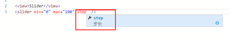 在Wxml页面中 给 slider 写 step属性时,有代码提示,回车后属性就自动变成了 max 了。。。
