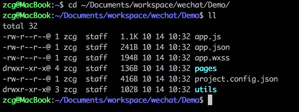 你好,新建一个Demo工程目录在/Users/zcg/Documents/workspace/wechat/Demo