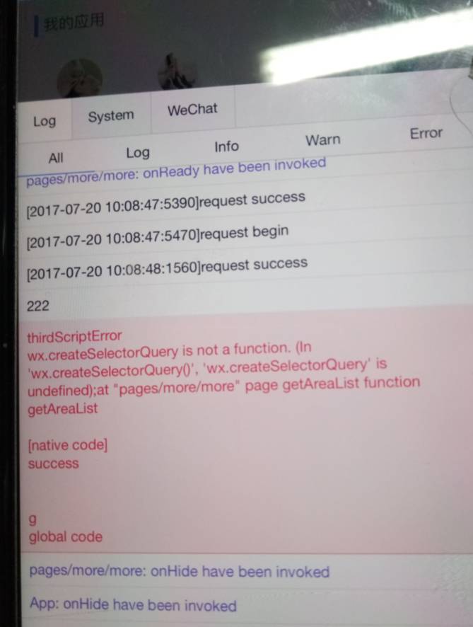 基础库1.4.2,微信版本也是最新版,模拟器正常打出,ios上用canIuse判断到是可以兼容,可却用不了、报错了,求解决方案,以下是截图: