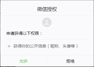 模拟器弹出,微信授权,申请获取用户公开信息对话框,如下图: