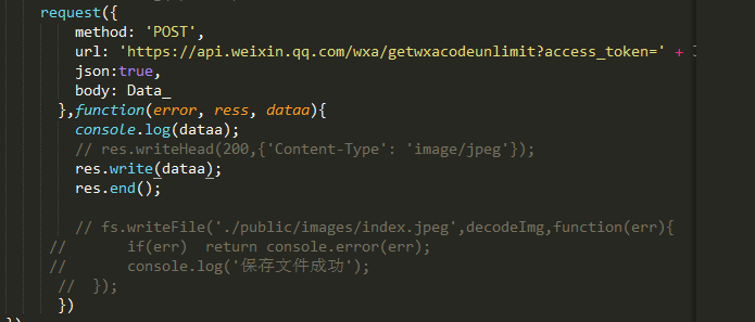 用微信文档的B接口获取二维码,一直是乱码,用node如何处理这个数据,从微信接口返回的数据如何处理成图片,返回为乱码
