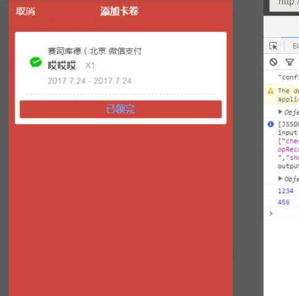 活动页面调去wx.addCard一直出现参数错误和已领完的按钮