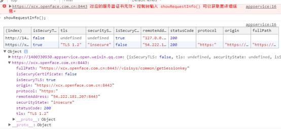对应的服务器证书无效。控制台输入 showRequestInfo() 可以获取更详细信息。