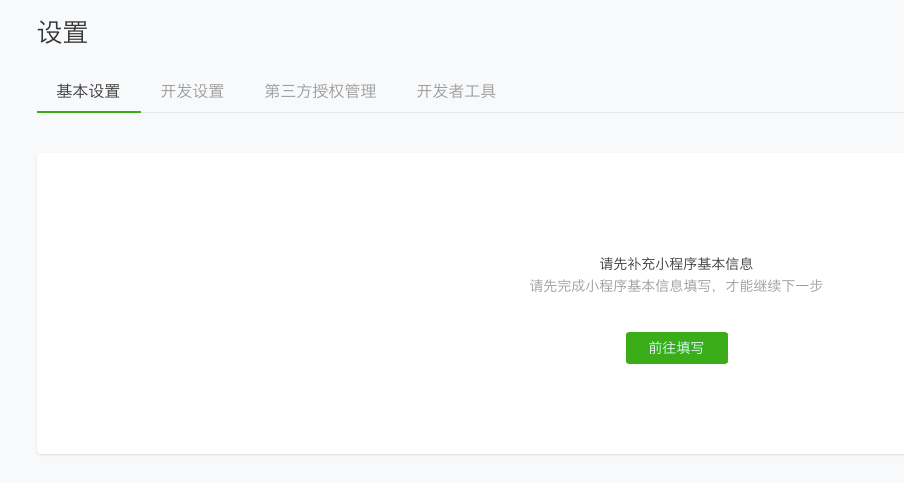 请先完成小程序基本信息填写,才能继续下一步