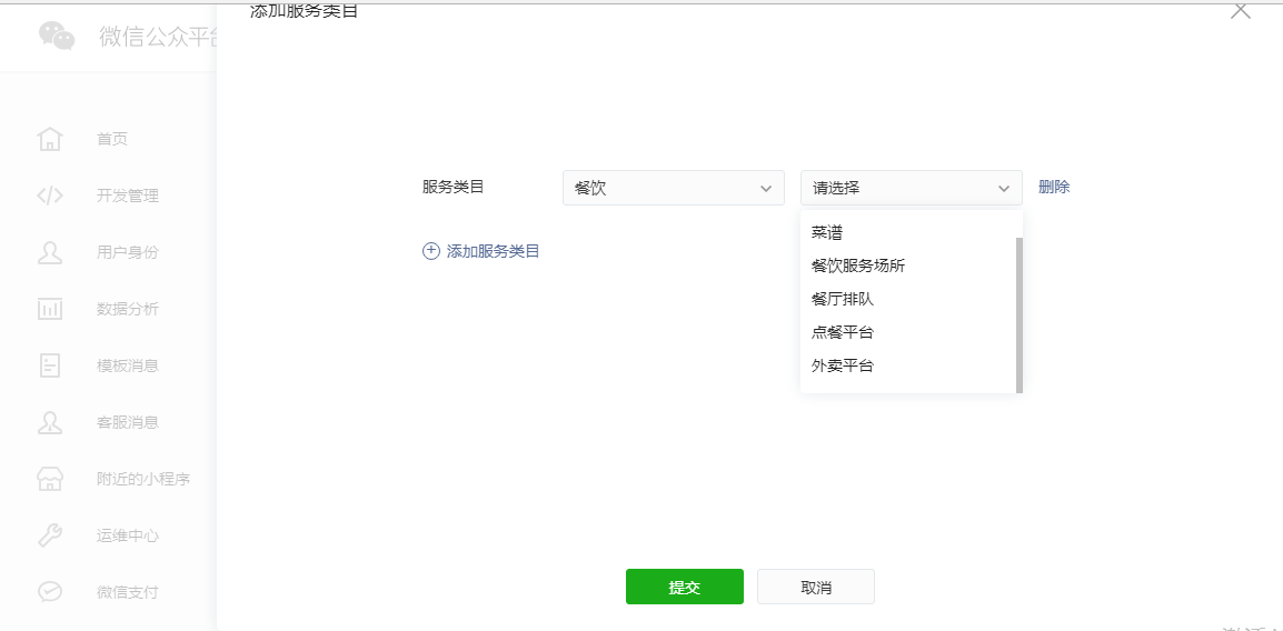 我们作为第三方平台,开发了一套小程序模板,在为授权方的小程序提交发布审核的时候页面配置用的是同一套,其中服务类目统一都是餐饮-点餐。但是今天发现有个授权方的小程序可选类目中没有餐饮-点餐这个类目导致提交审核失败,这个授权方的主体信息是企业类型的。我们开发模板时用的几个小程序都是企业类型的,可选的服务类目都有餐饮-点餐这个类目,请问下餐饮-点餐这个类目的出现是根据什么判断的,或者说哪些类目是通用的,哪些是个例?