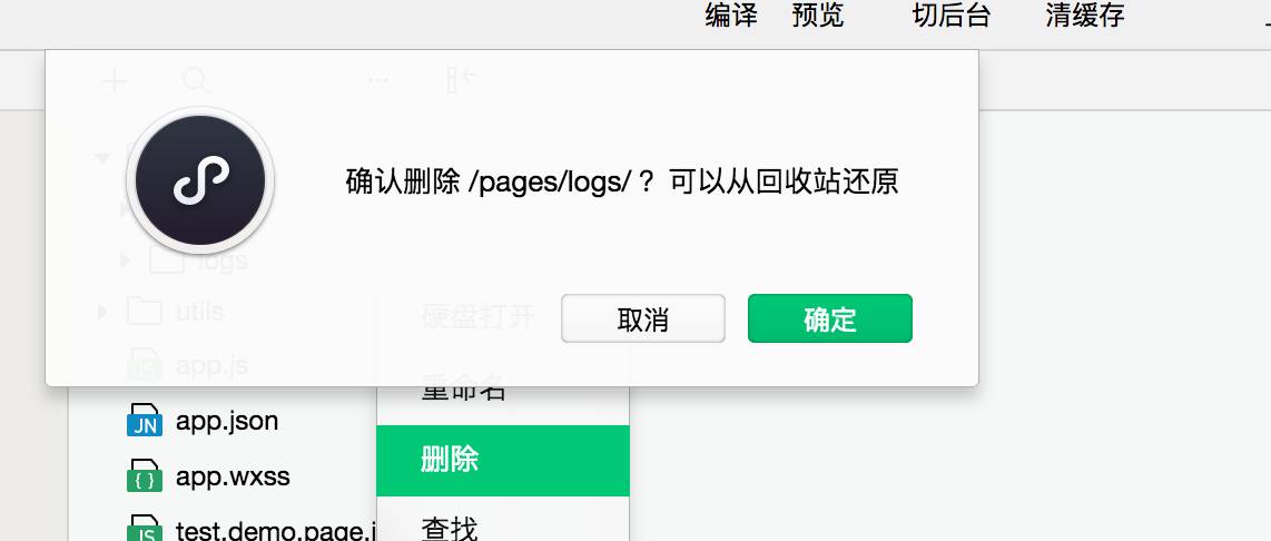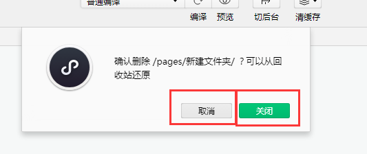 删除文件夹是 弹框问 确认删除? 《取消》or 《关闭》
