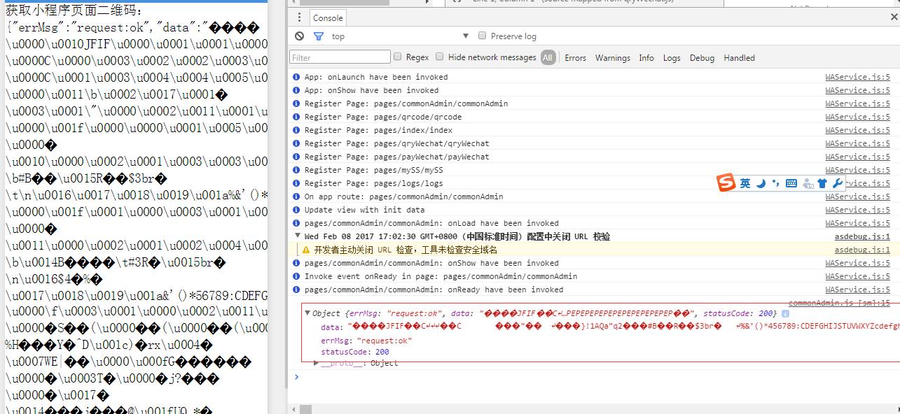 通过获取小程序页面二维码接口返回值中data如下图,怎样才可以展示成二维码图片
